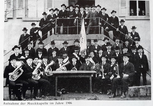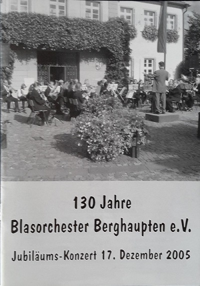 Die Chronik in Bilder : Für jedes Vereinsjubiläum wurde eine Festschrift niedergeschrieben . Die Tradition der Blasmusik begann in Berghaupten im Jahre 1875